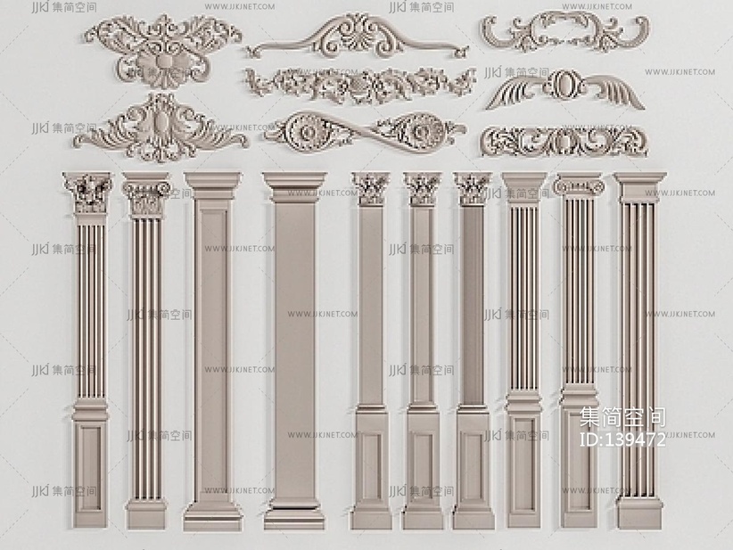 欧式雕花柱子角花 3d模型下载 [模型ID:139472]