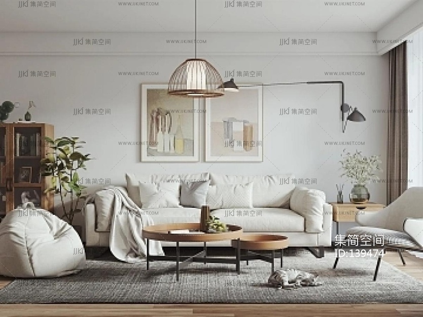 中古风客厅,美式客厅,圆形茶几,装饰画,移动电视,3d模型下载