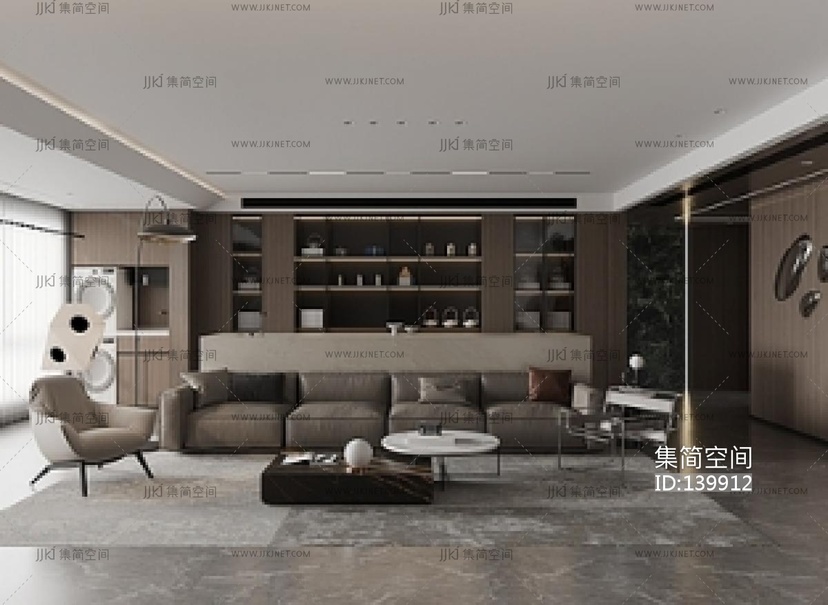现代意式极简家居客厅,现代沙发茶几 3d模型下载 3d模型下载 [模型ID:139912]