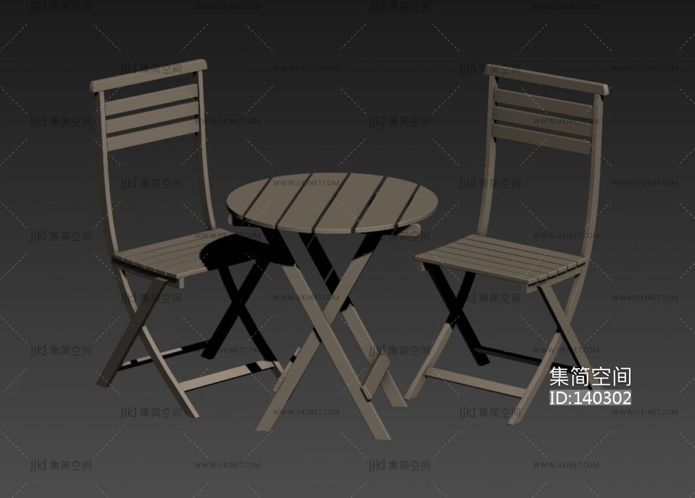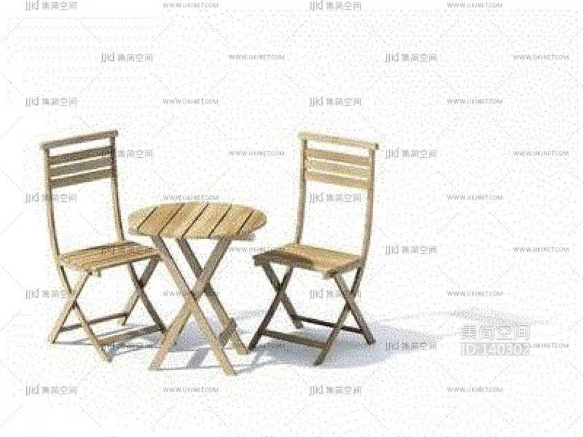 现代木艺休闲桌椅组合 3d模型下载 [模型ID:140302]