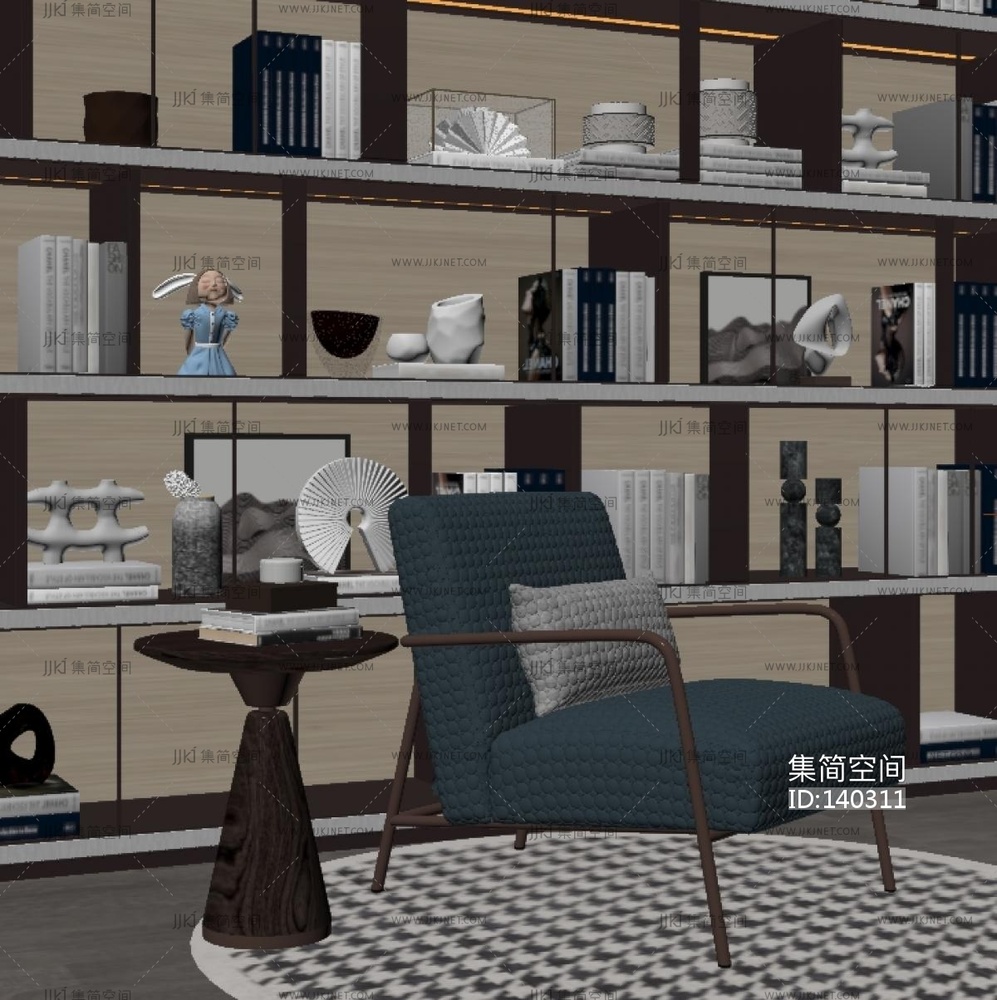 现代休闲椅书柜 3d模型下载 [模型ID:140311]