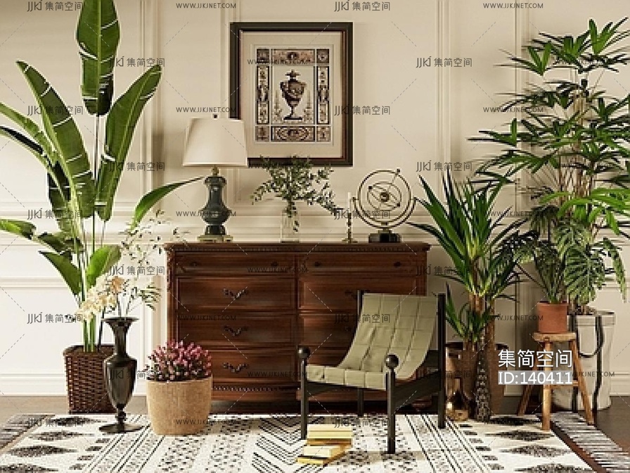 美式玄关柜摆台装饰画3D模型下载3d模型下载