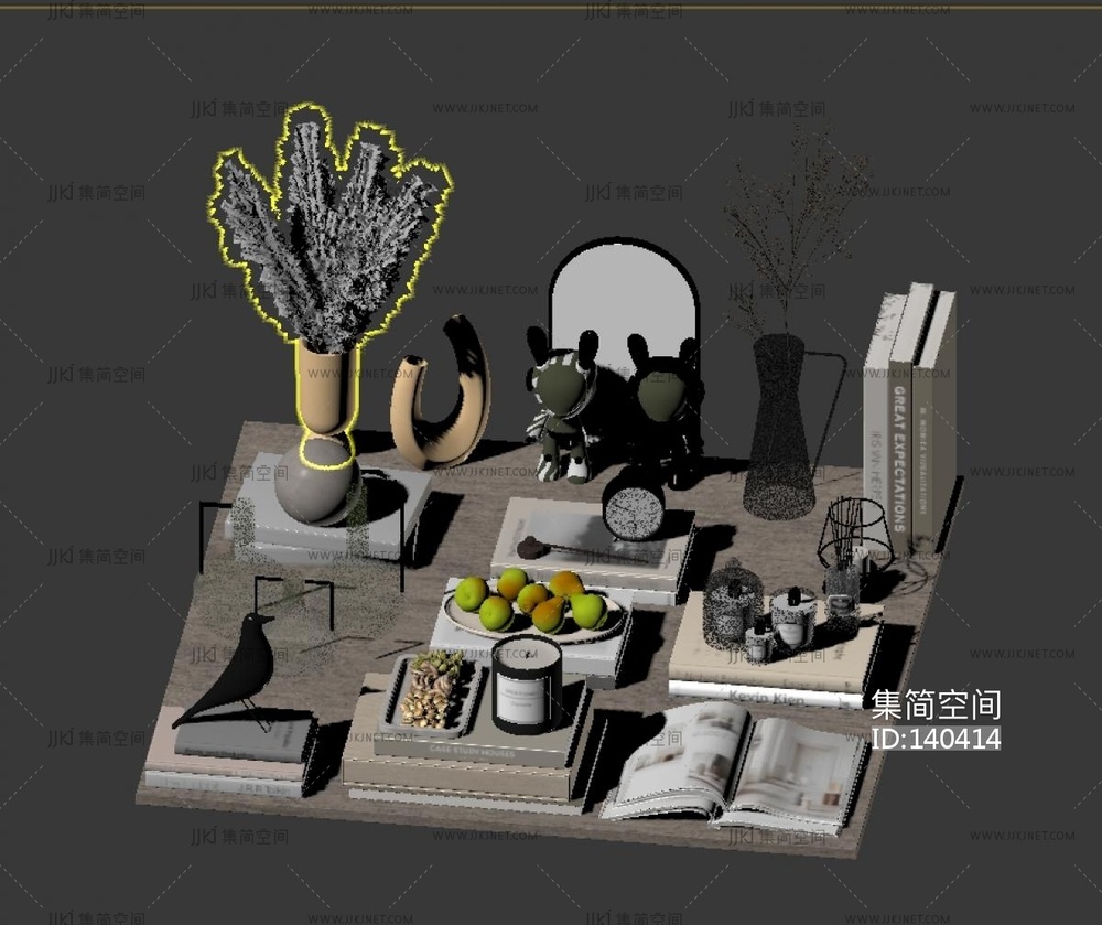 现代桌面摆件 书籍 花瓶3d模型 3d模型下载 [模型ID:140414]