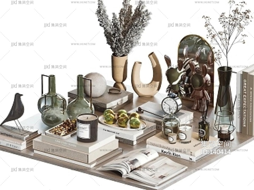 现代装饰品摆件_书籍_花瓶3D模型3d模型下载