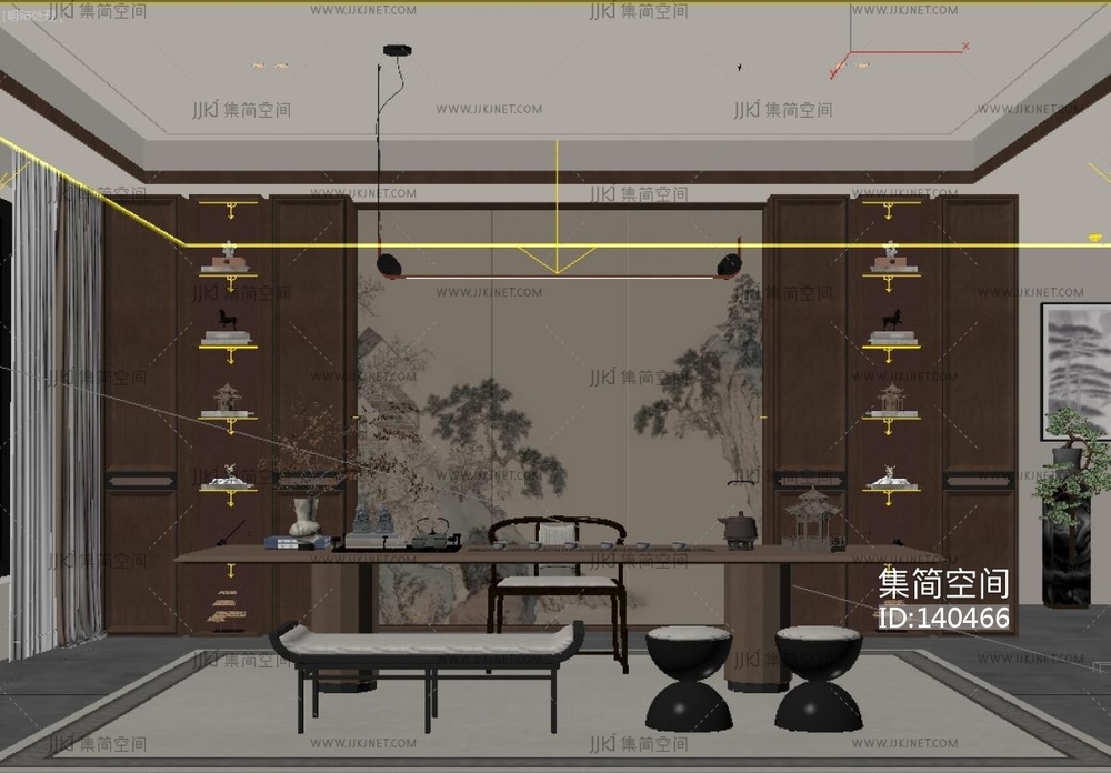 新中式茶室,茶桌椅 3d模型下载 [模型ID:140466]