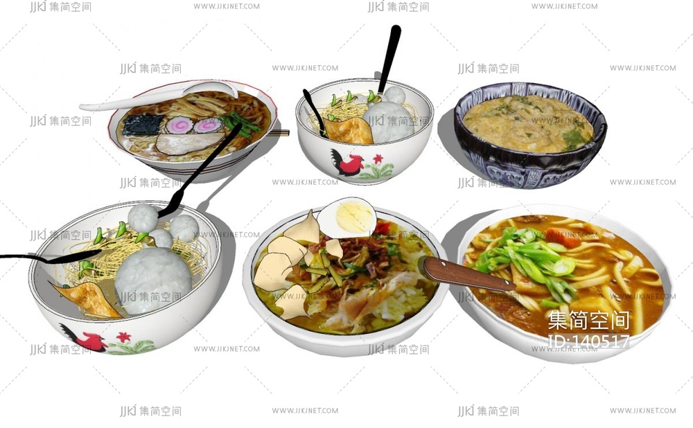 现代面条,煮面,美食SU模型 su草图模型下载 [模型ID:140517]