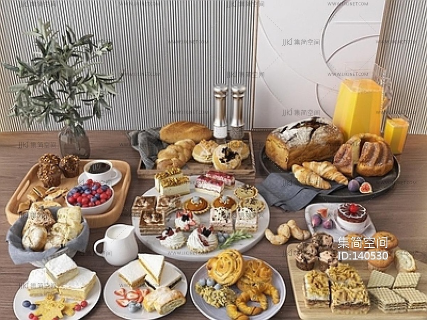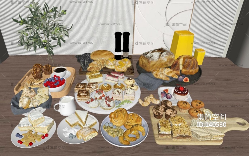 面包西点组合SU模型 su草图模型下载 [模型ID:140530]