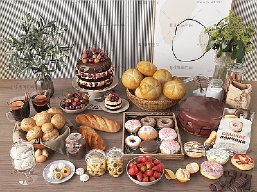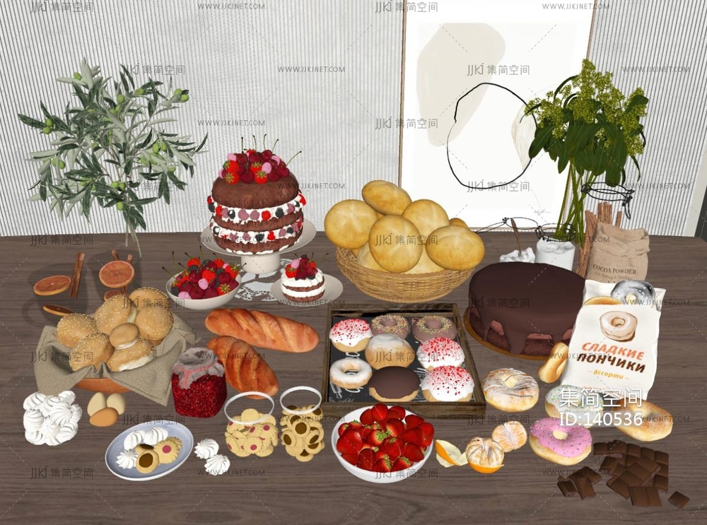 面包西点组合SU模型 su草图模型下载 [模型ID:140536]