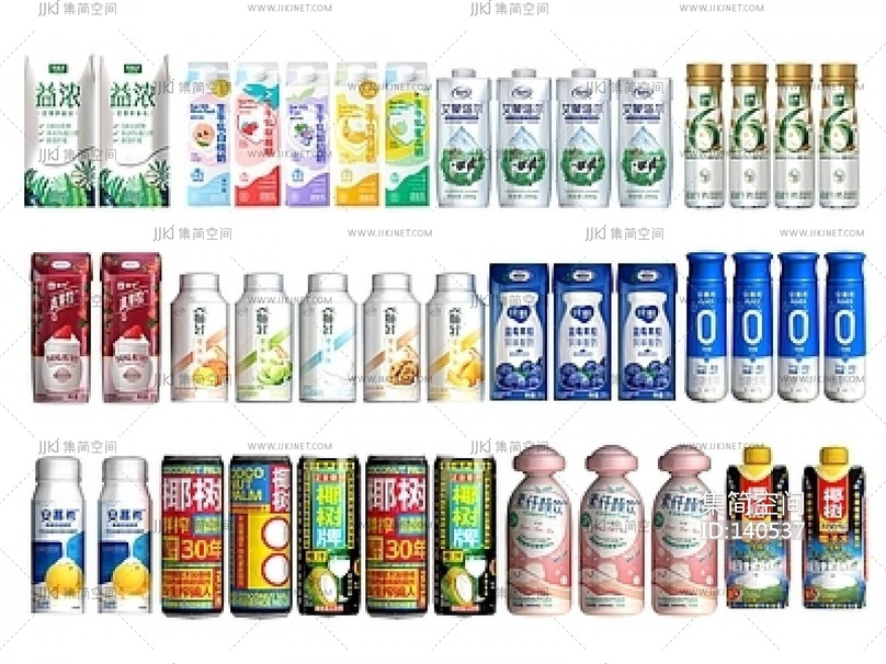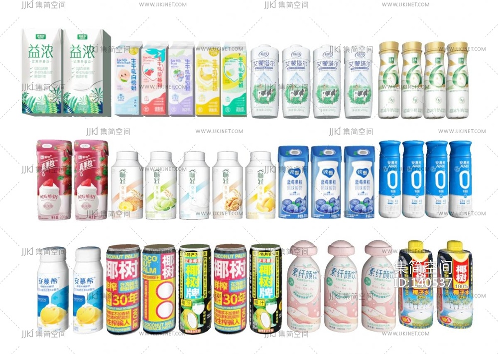 果汁,酸奶饮料组合SU模型 su草图模型下载 [模型ID:140537]