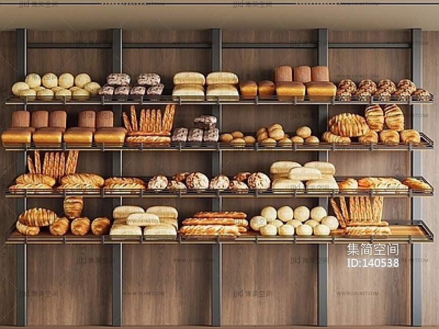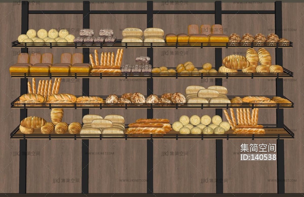 面包组合,面包货架SU模型 su草图模型下载 [模型ID:140538]