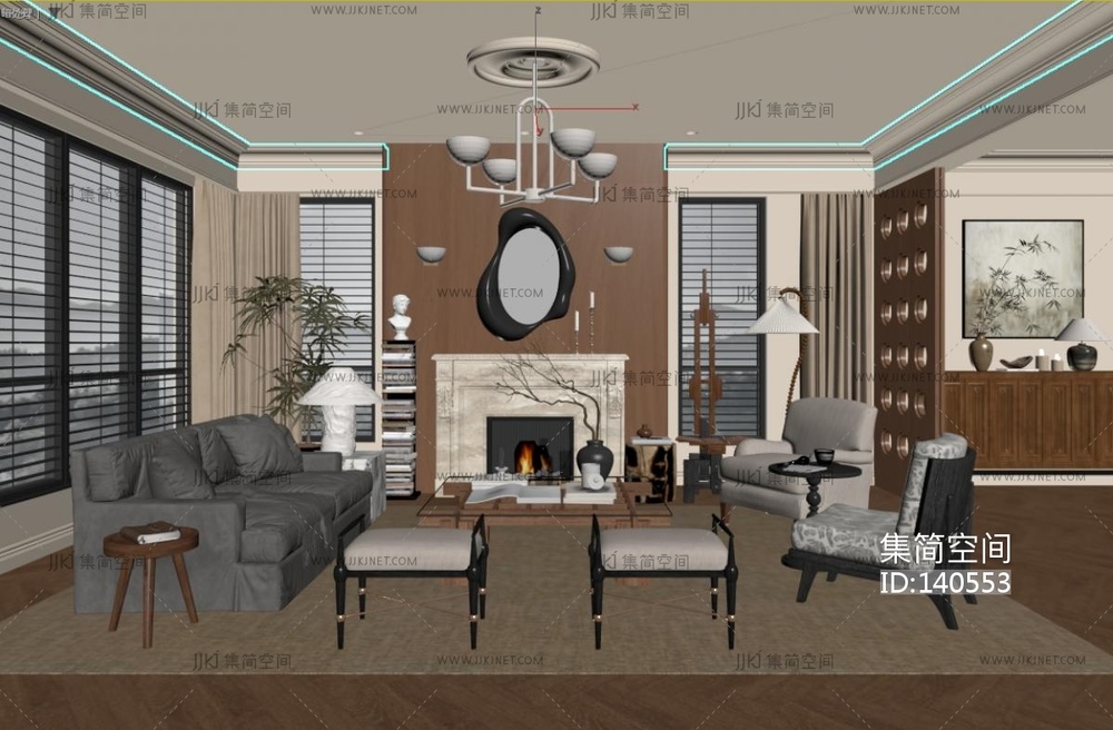 法式客厅3d模型 3d模型下载 [模型ID:140553]