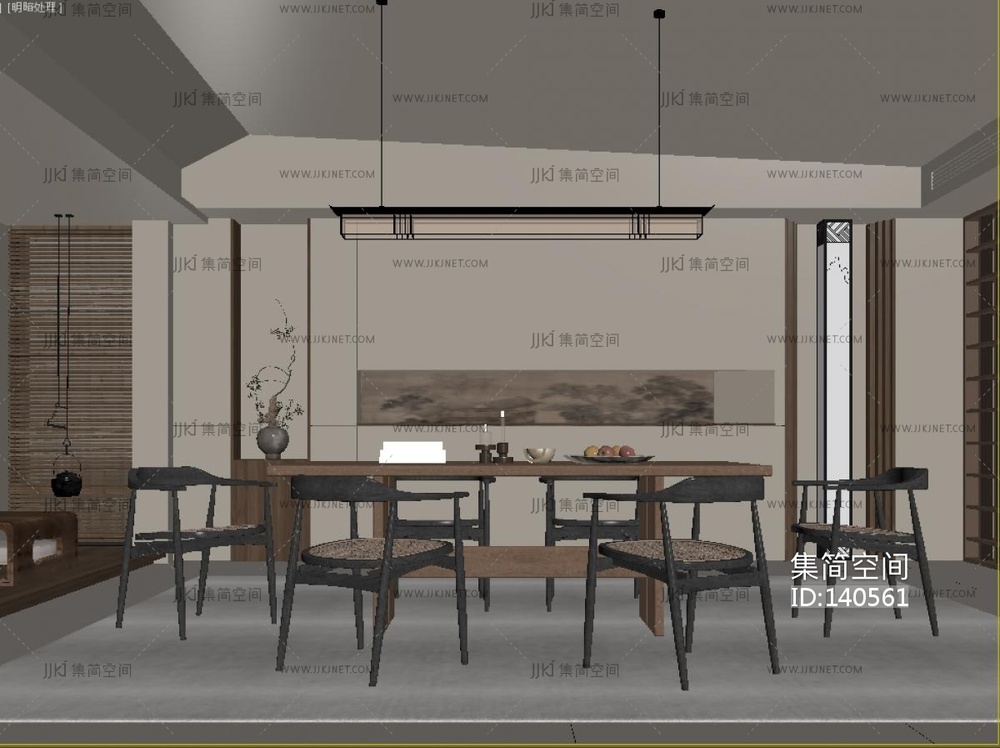 新中式餐厅 3d模型下载 [模型ID:140561]