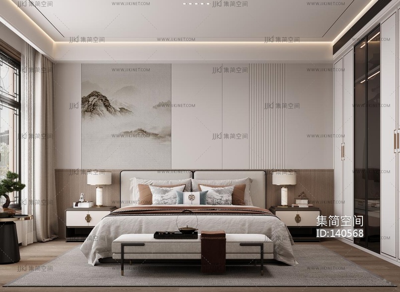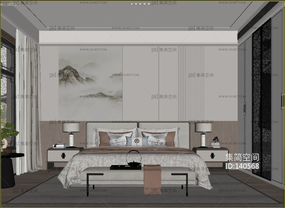新中式卧室, 3d模型下载 [模型ID:140568]