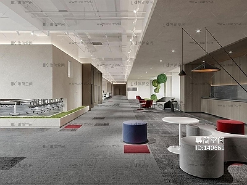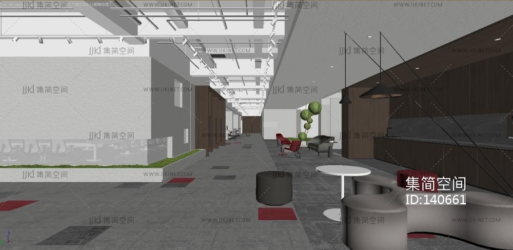 现代公司休息区,休闲沙发公共座椅沙发区 3d模型下载 [模型ID:140661]