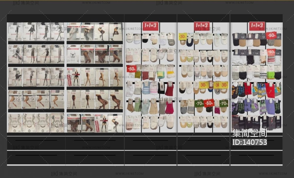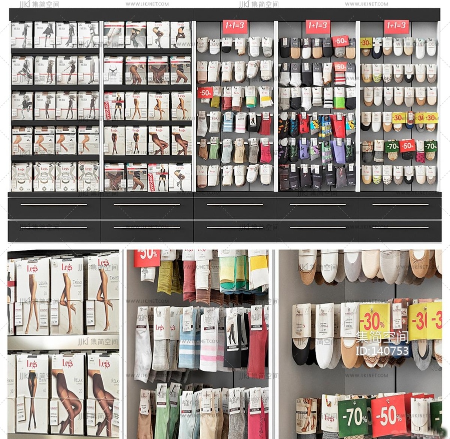 现代超市服饰货柜 3d模型下载 [模型ID:140753]