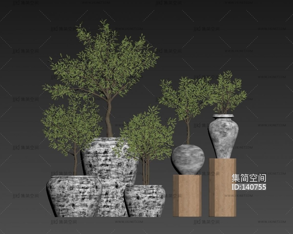 现代现代 植物盆栽组合 3d模型下载 [模型ID:140755]