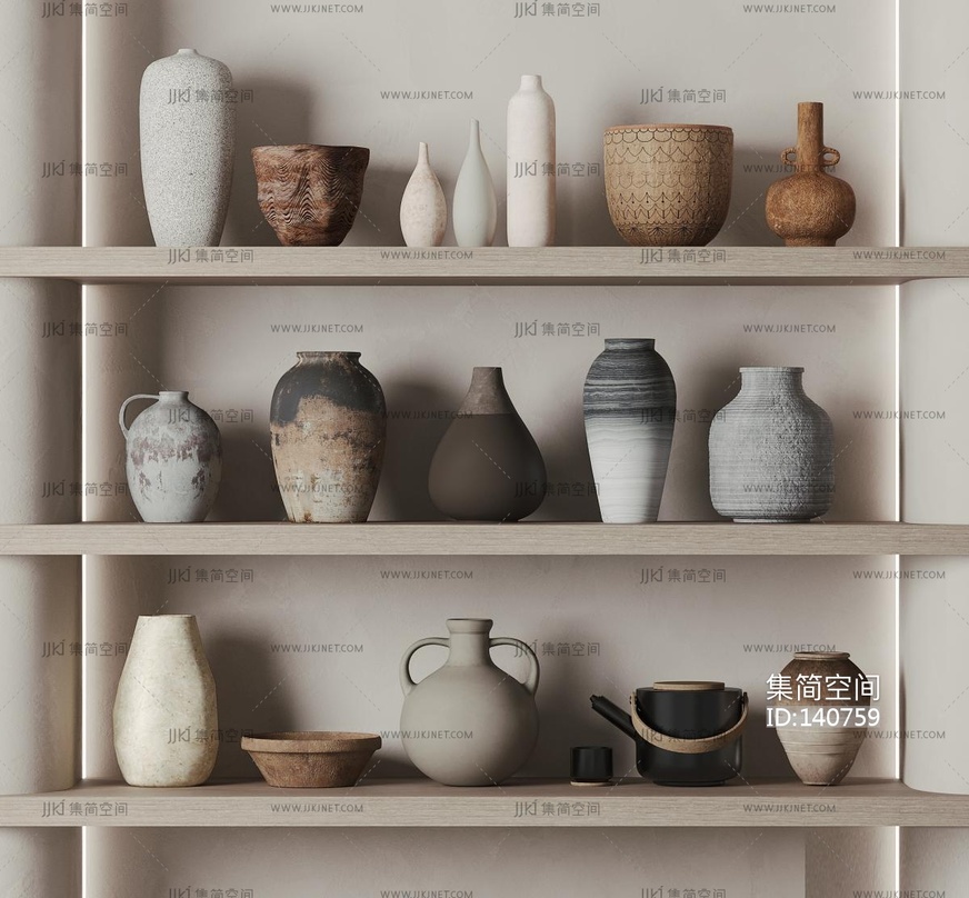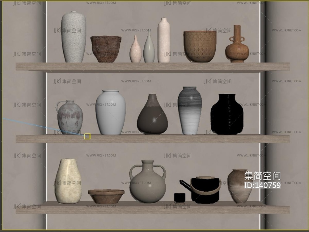 新中式侘寂风干枝 陶罐 花瓶3d模型下载