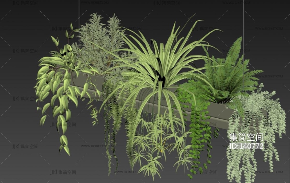 现代 吊篮,吊装绿植植物 3d模型下载 [模型ID:140772]