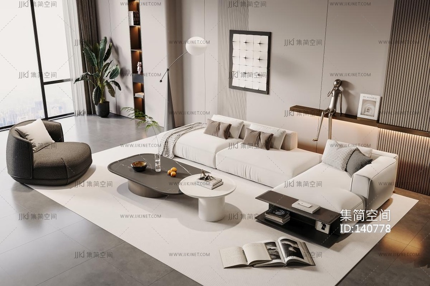 现代客厅 3d模型3d模型下载