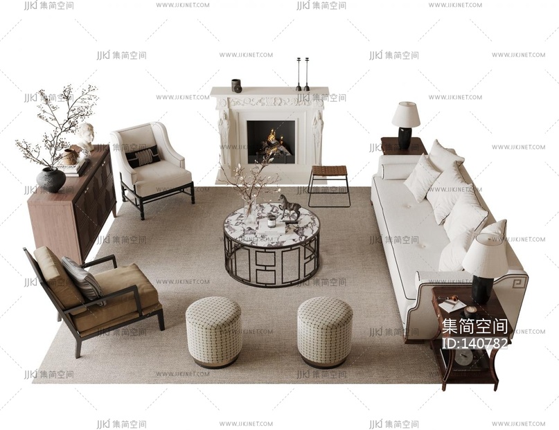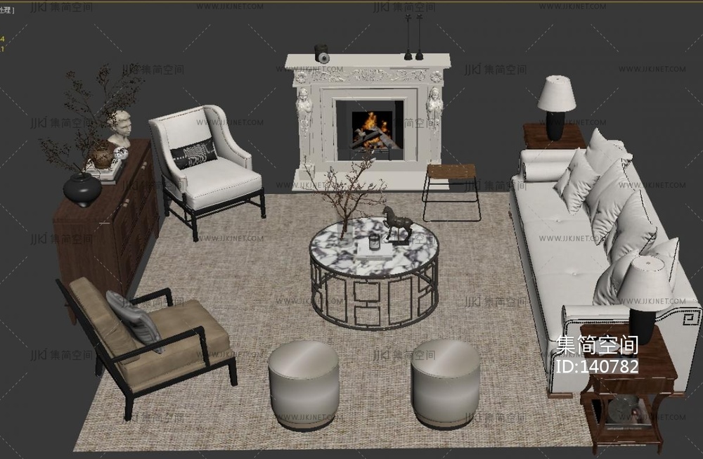 美式中古风沙发茶几组合3D模型crrrr 3d模型下载 [模型ID:140782]