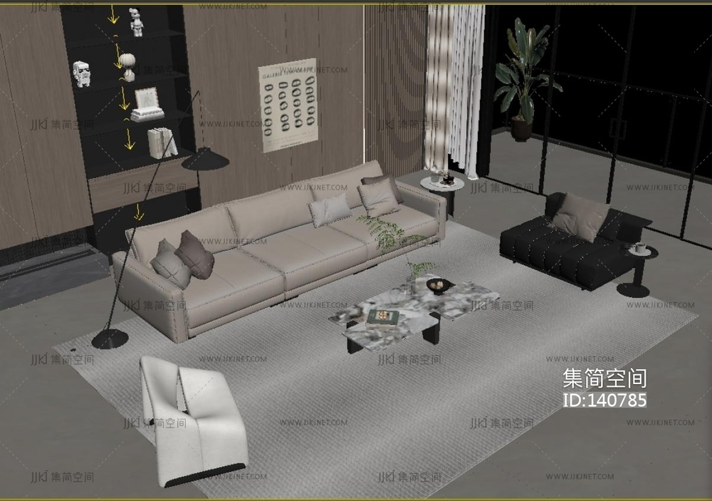 -现代沙发茶几组合 3d模型下载 [模型ID:140785]