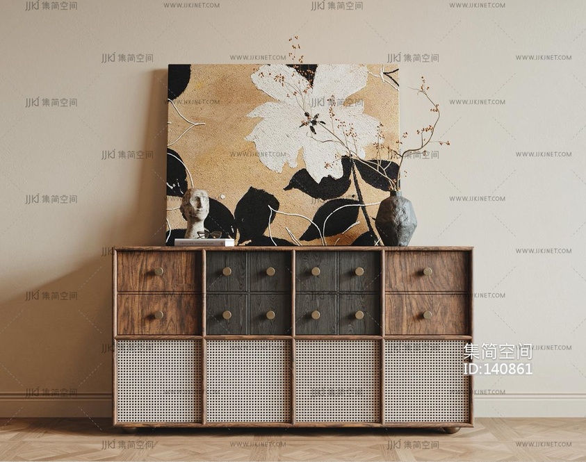 中古风玄关柜_边柜 3d模型下载 [模型ID:140861]