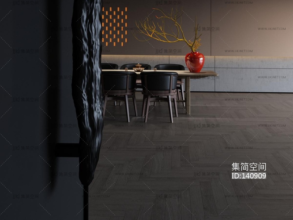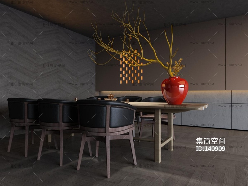 新中式茶室 茶桌 ,藤编编织吊灯,竹竿3d模型下载