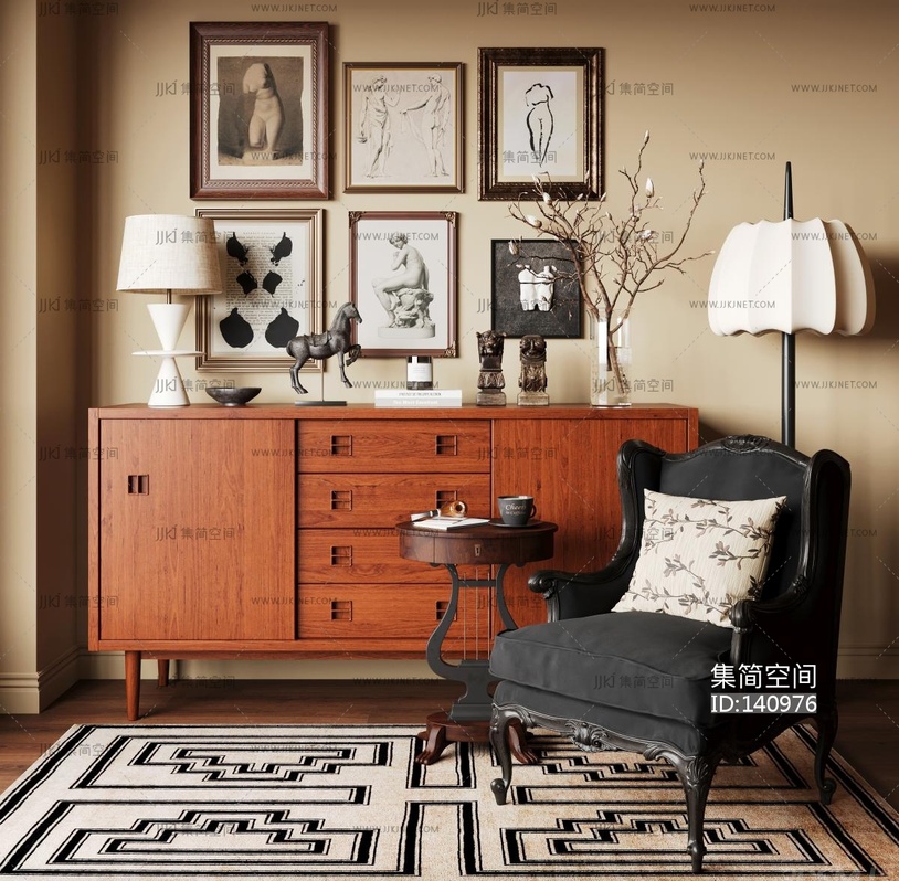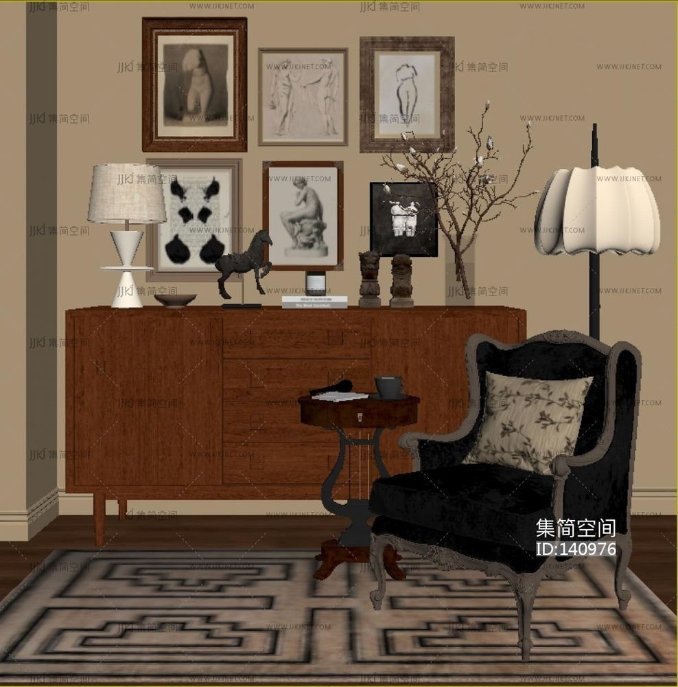 法式橱柜法式中古风装饰柜挂画,落地灯3D模型3d模型下载