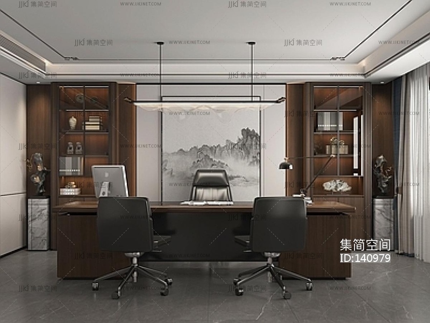 新中式经理办公室3D模型 3d模型下载 [模型ID:140979]