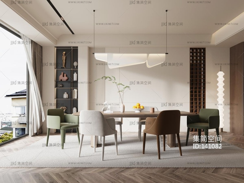 现代,餐厅,餐桌椅组合,餐椅,椅子,吊灯,落地灯 3d模型下载 [模型ID:141082]