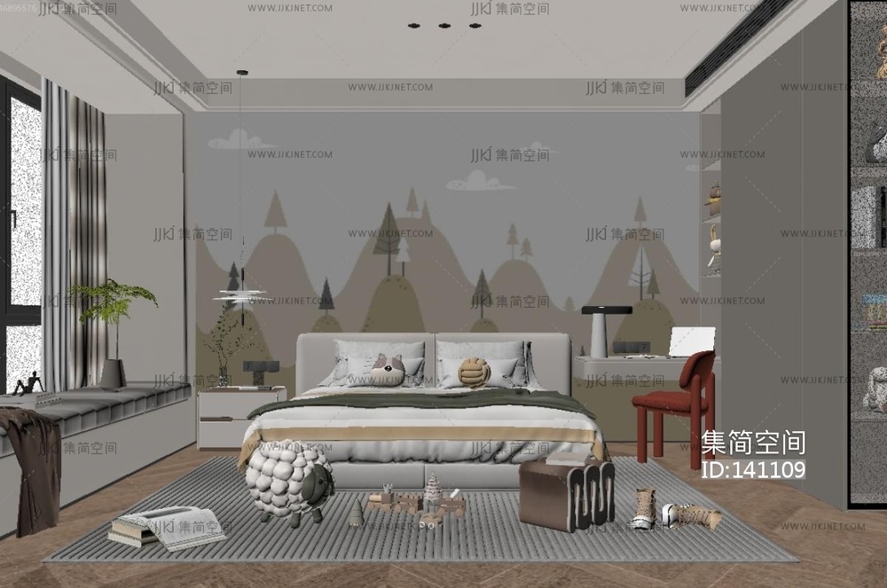 现代通用儿童房女孩房 3d模型下载 [模型ID:141109]