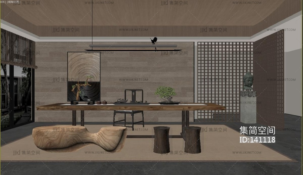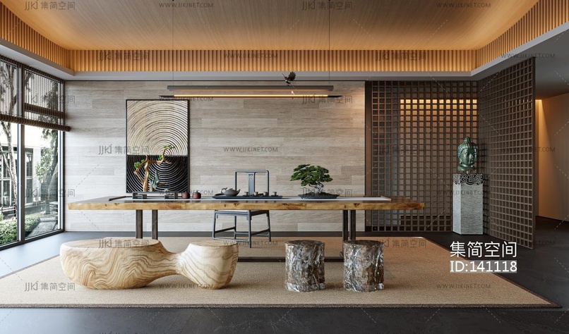 新中式茶室_茶桌椅组合 3d模型下载 [模型ID:141118]