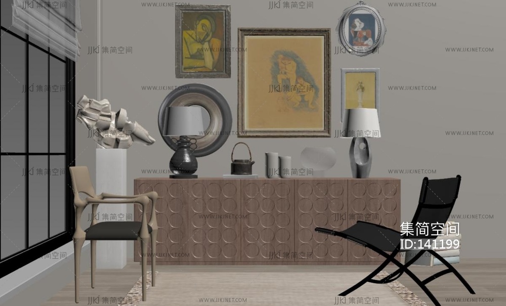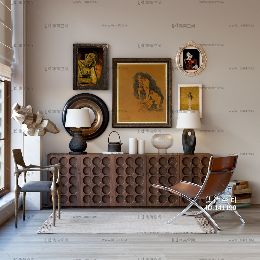 法式橱柜法式中古风装饰柜挂画,落地灯3D模型3d模型下载