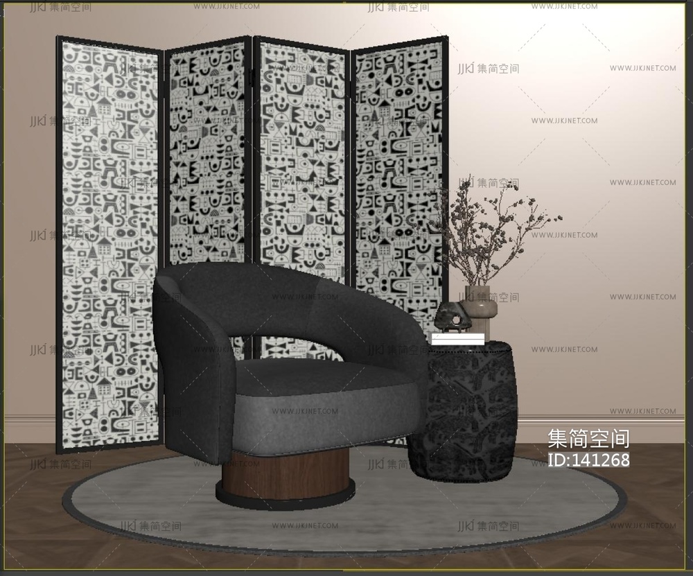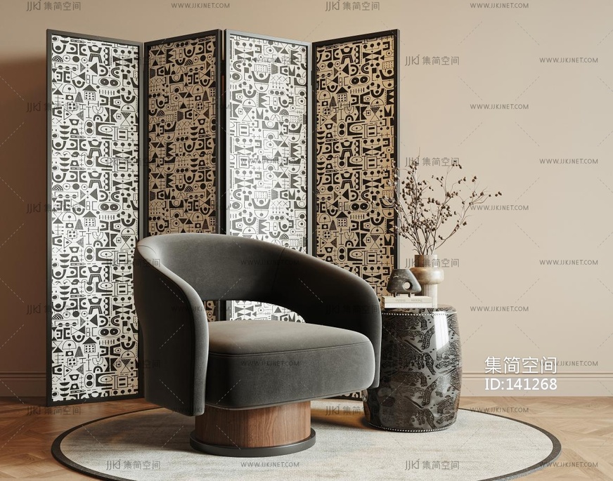 现代中古风单人沙发 3d模型下载 [模型ID:141268]