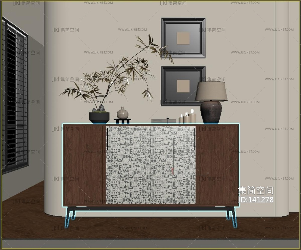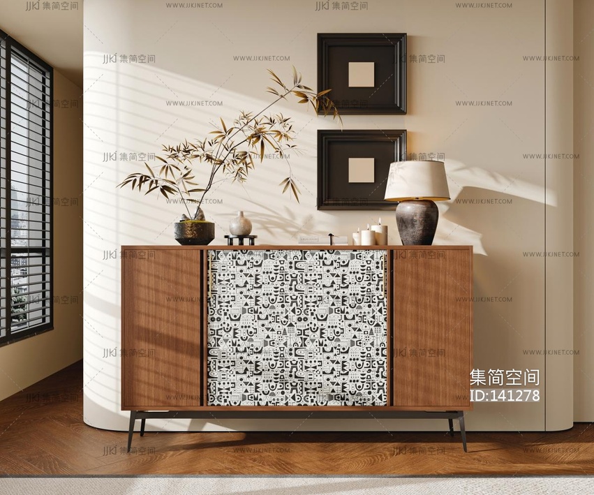 现代中古风玄关柜 3d模型下载 [模型ID:141278]