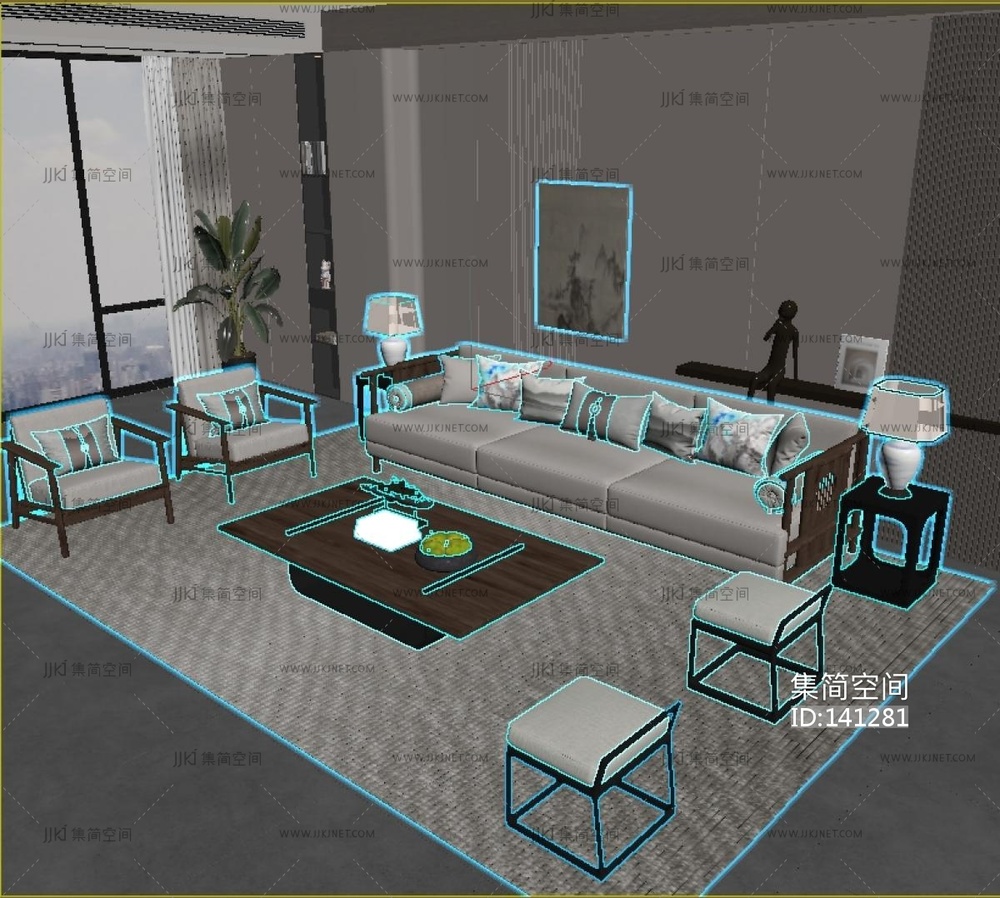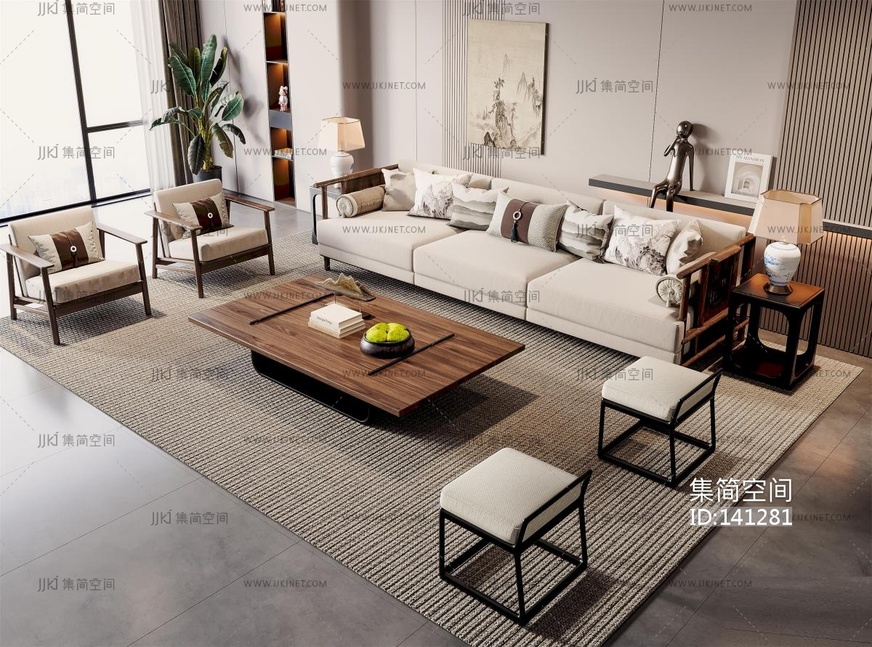 新中式轻奢沙发茶几 3d模型下载 [模型ID:141281]