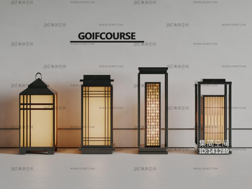 新中式铁艺草坪灯,落地灯景观灯3d模型下载