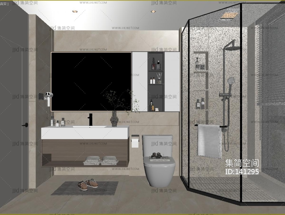 法式奶油风卫生间_洗手盆_马桶抽纸盒花瓶3D模型3d模型下载