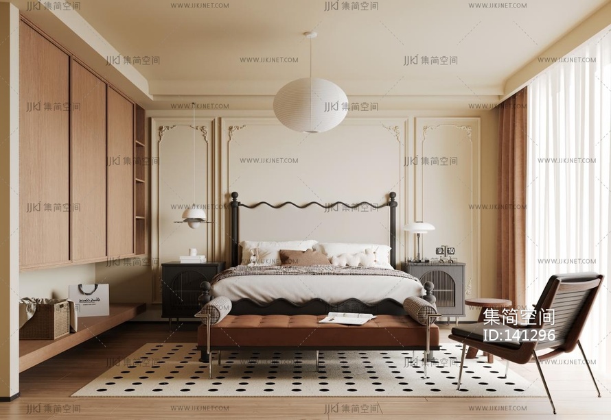 卧室,轻奢,暗黑风,现代轻奢卧室双人床,懒人沙发法式卧室3d模型下载