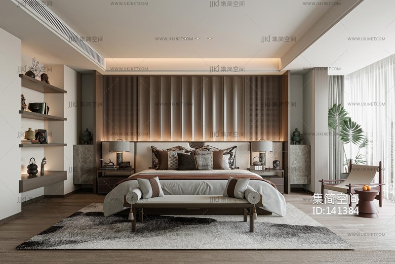 新中式家居卧室_ 3d模型下载 [模型ID:141384]