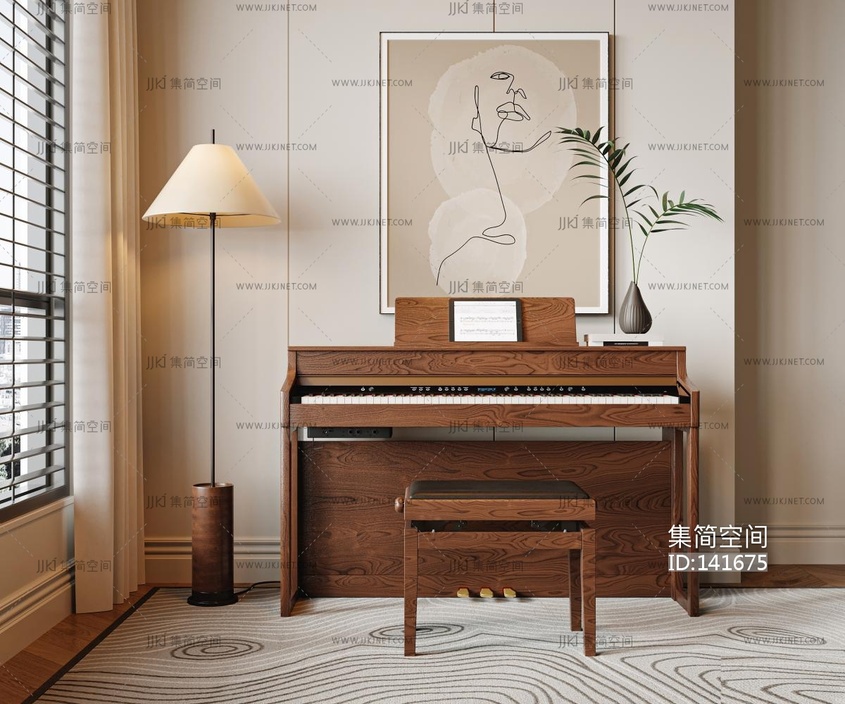 现代中古风钢琴 3d模型下载 [模型ID:141675]
