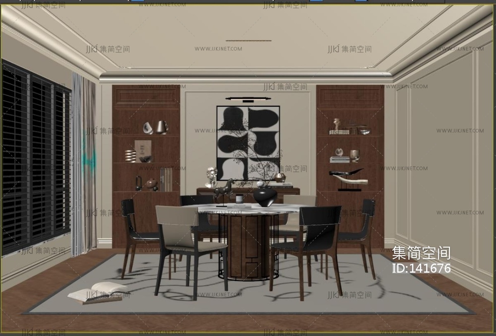 现代中古风餐厅_ 3d模型下载 [模型ID:141676]