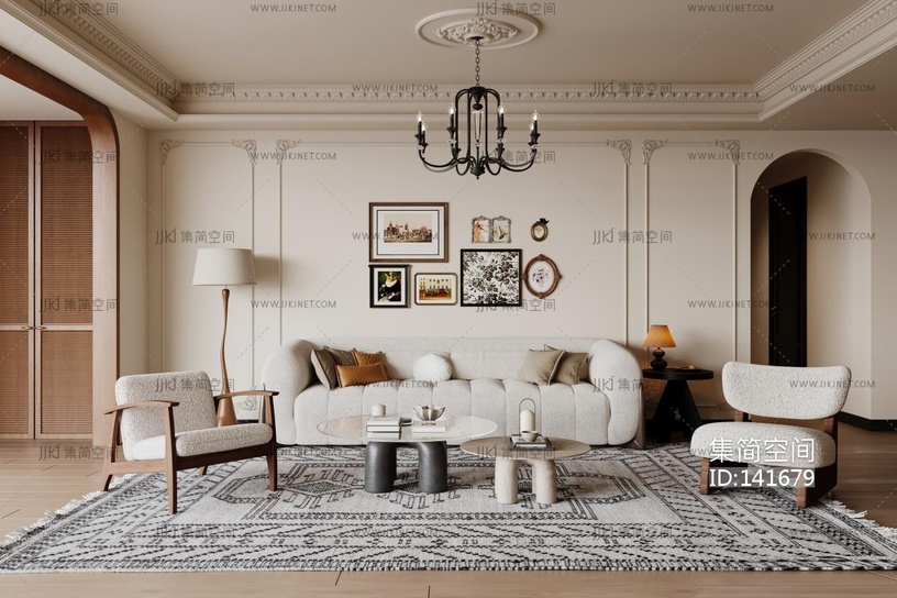 法式家居客厅3D模型3d模型下载
