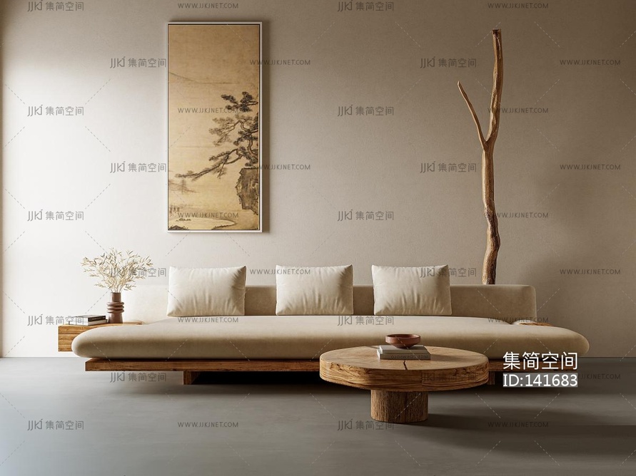 侘寂风三人沙发 3d模型下载 [模型ID:141683]