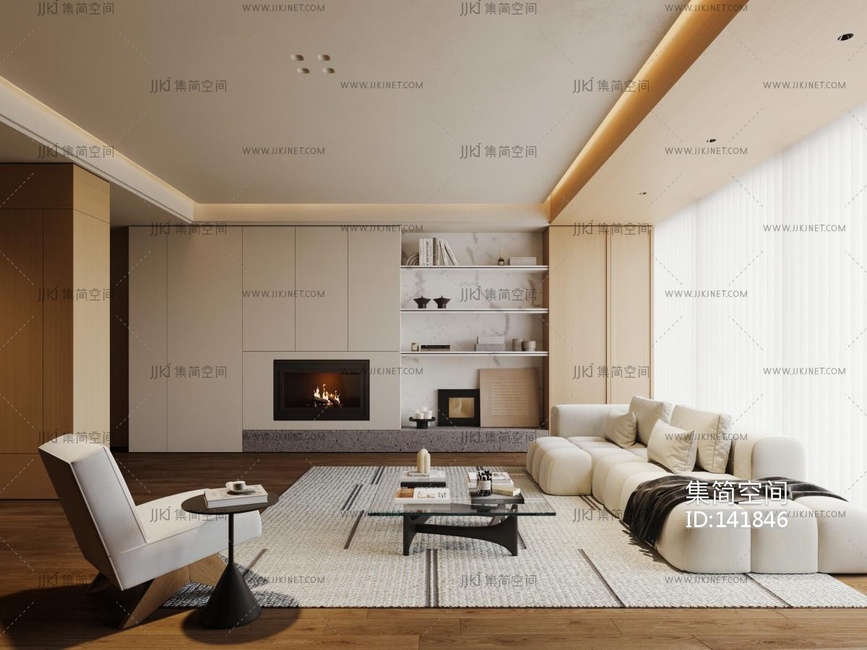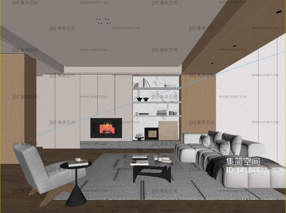 中古风客厅 沙发茶几组合 背景墙3d模型下载