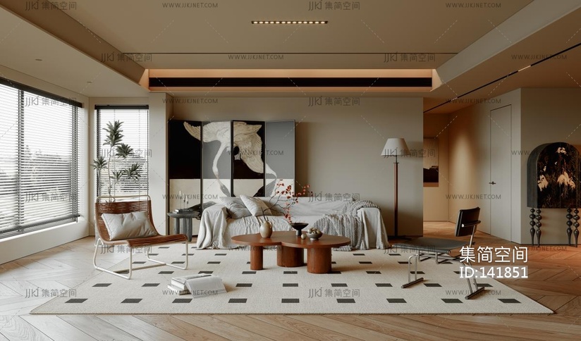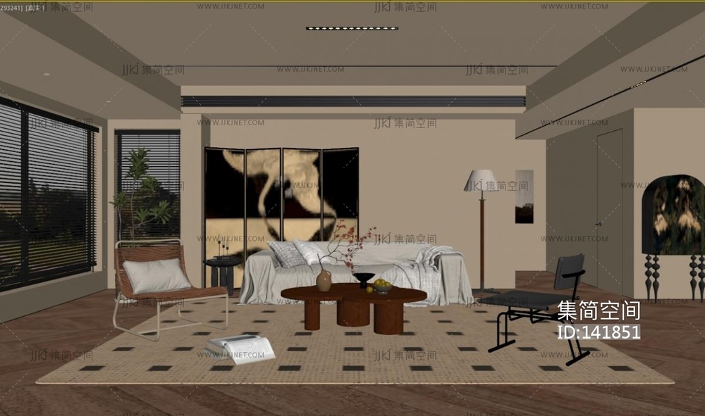 侘寂中古家居客厅 3d模型下载 [模型ID:141851]