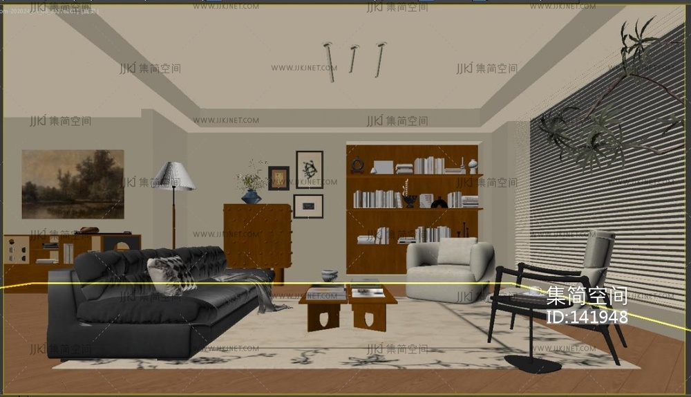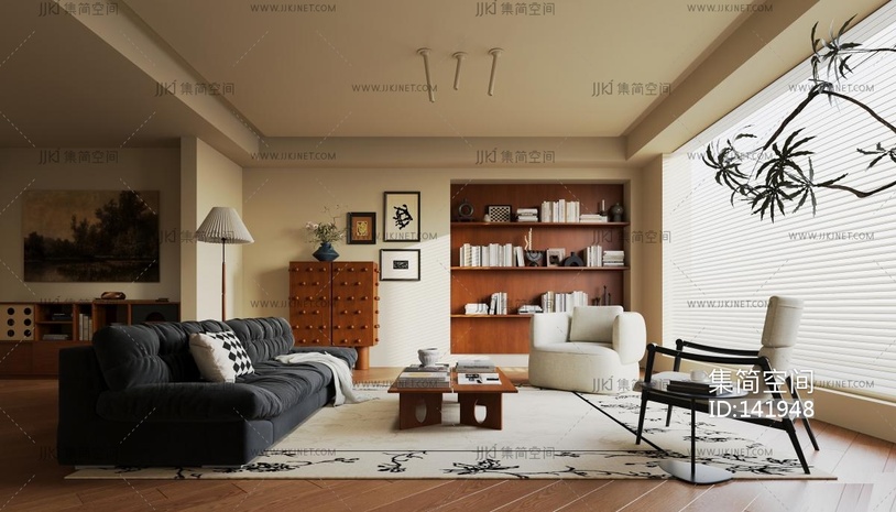 侘寂中古家居客厅 3d模型下载 [模型ID:141948]