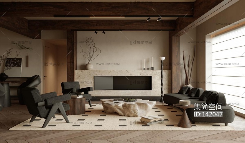 -现代中古家居客厅 3d模型下载 [模型ID:142047]