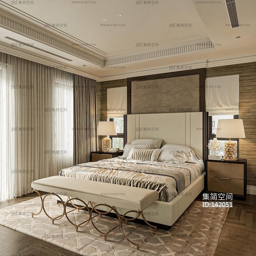 中古风客厅,美式客厅,圆形茶几,装饰画,移动电视,3d模型下载