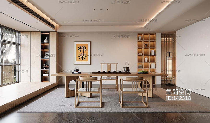 现代茶室_茶桌椅组合 3d模型下载 [模型ID:142318]